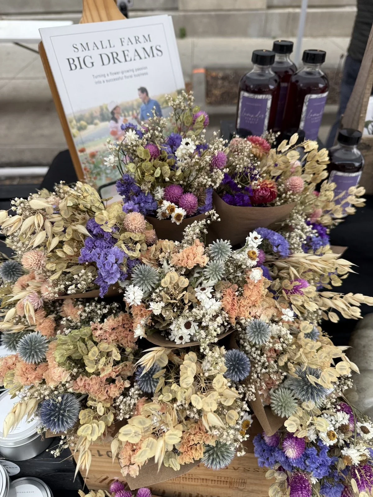 Drying flowers allows us to expand our flower season to diversify into selling flowers when fresh flowers are no longer in bloom, during our off season. This is a great way to keep our business running during the months when fresh flowers aren’t readily available.